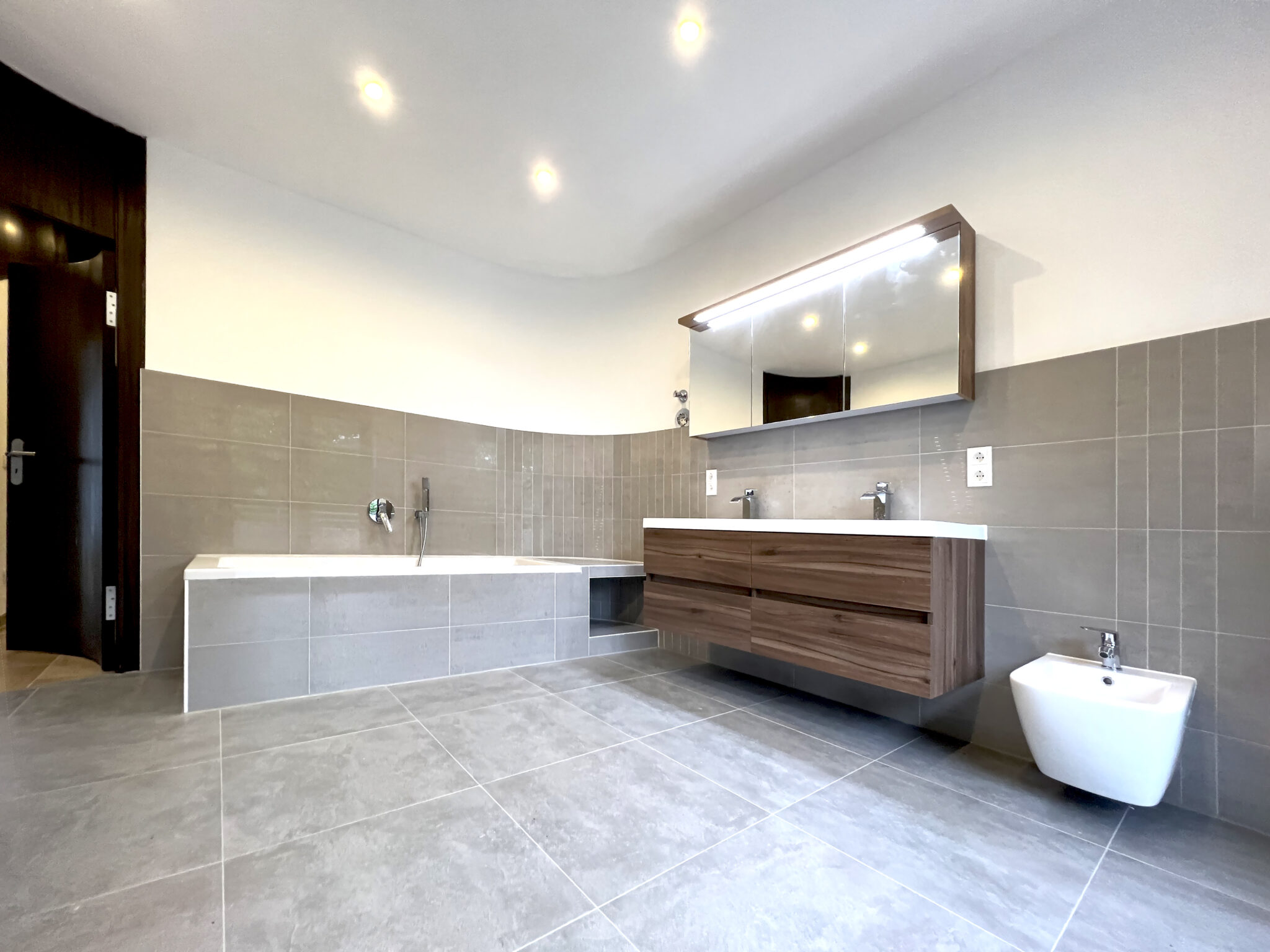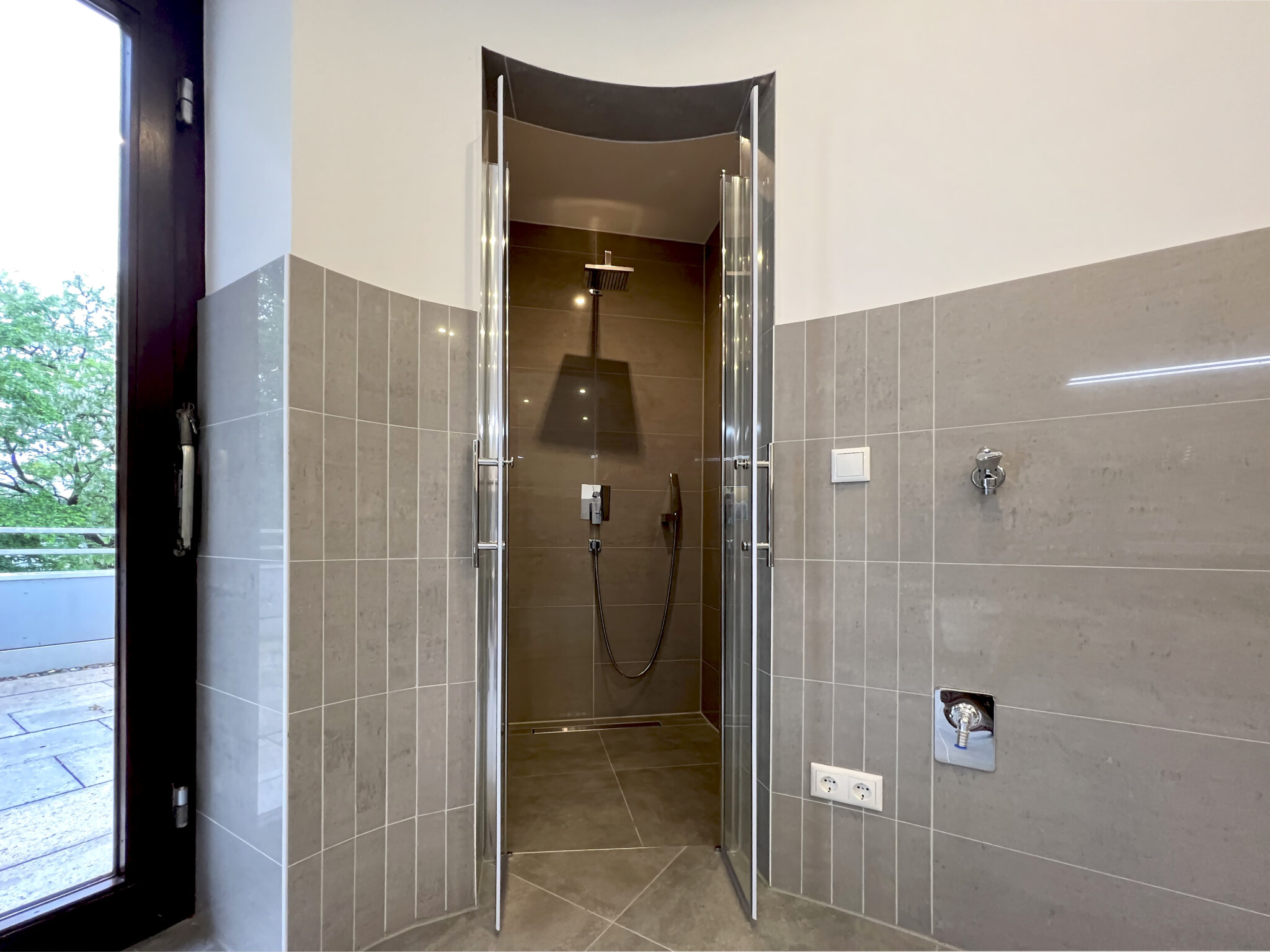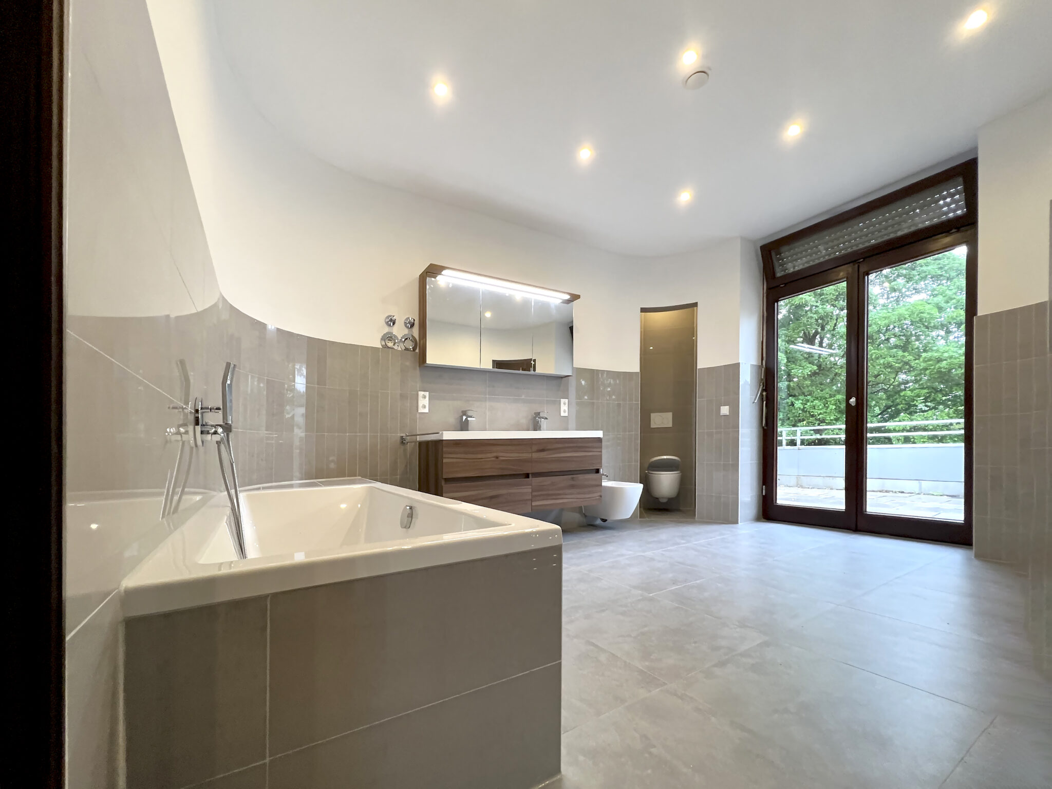 Das Penthouse bietet nicht nur eine exklusive Wohnatmosphäre, sondern auch ein großes Bad mit modernen Annehmlichkeiten, das zum Entspannen und Verwöhnen einlädt.