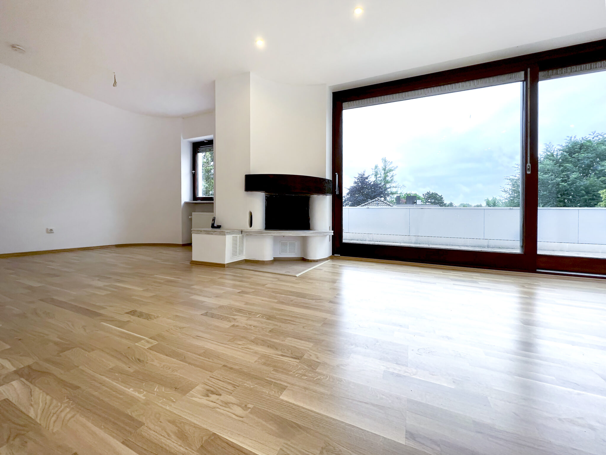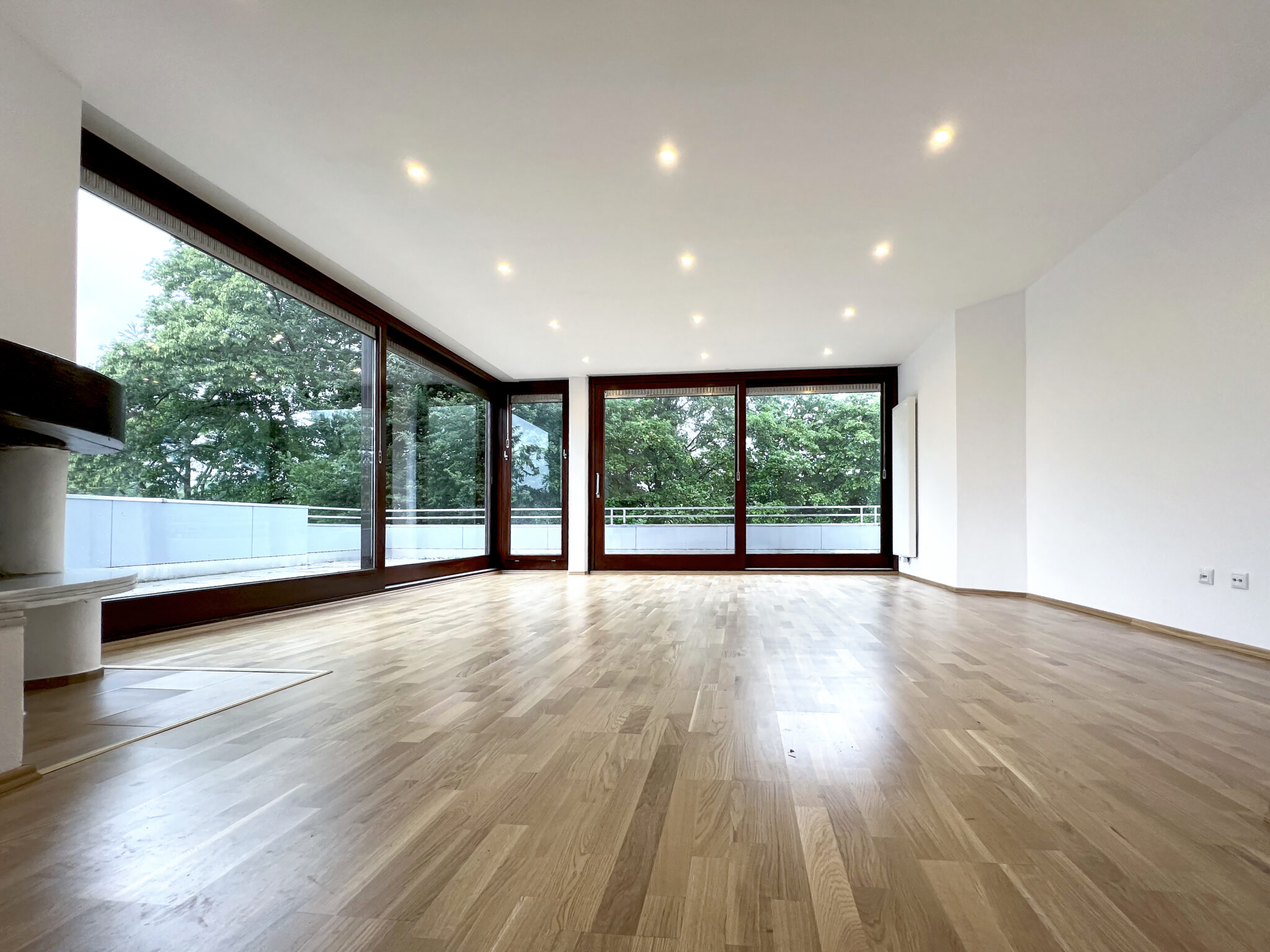 Der Wohnbereich ist mit einem eleganten Kamin ausgestattet, der nicht nur für gemütliche Abende sorgt, sondern auch eine warme Atmosphäre schafft. Die hochwertigen Parkettböden verleihen jedem Raum einen Hauch von Raffinesse und Luxus.