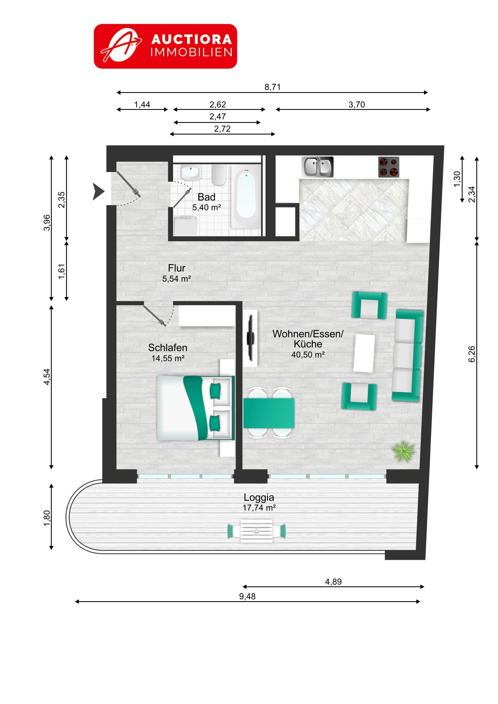 Bilder und Darstellungen sind Eigentum der Auctiora Immobilien GmbH und dürfen nicht ohne unsere Zustimmung weitergegeben werden.