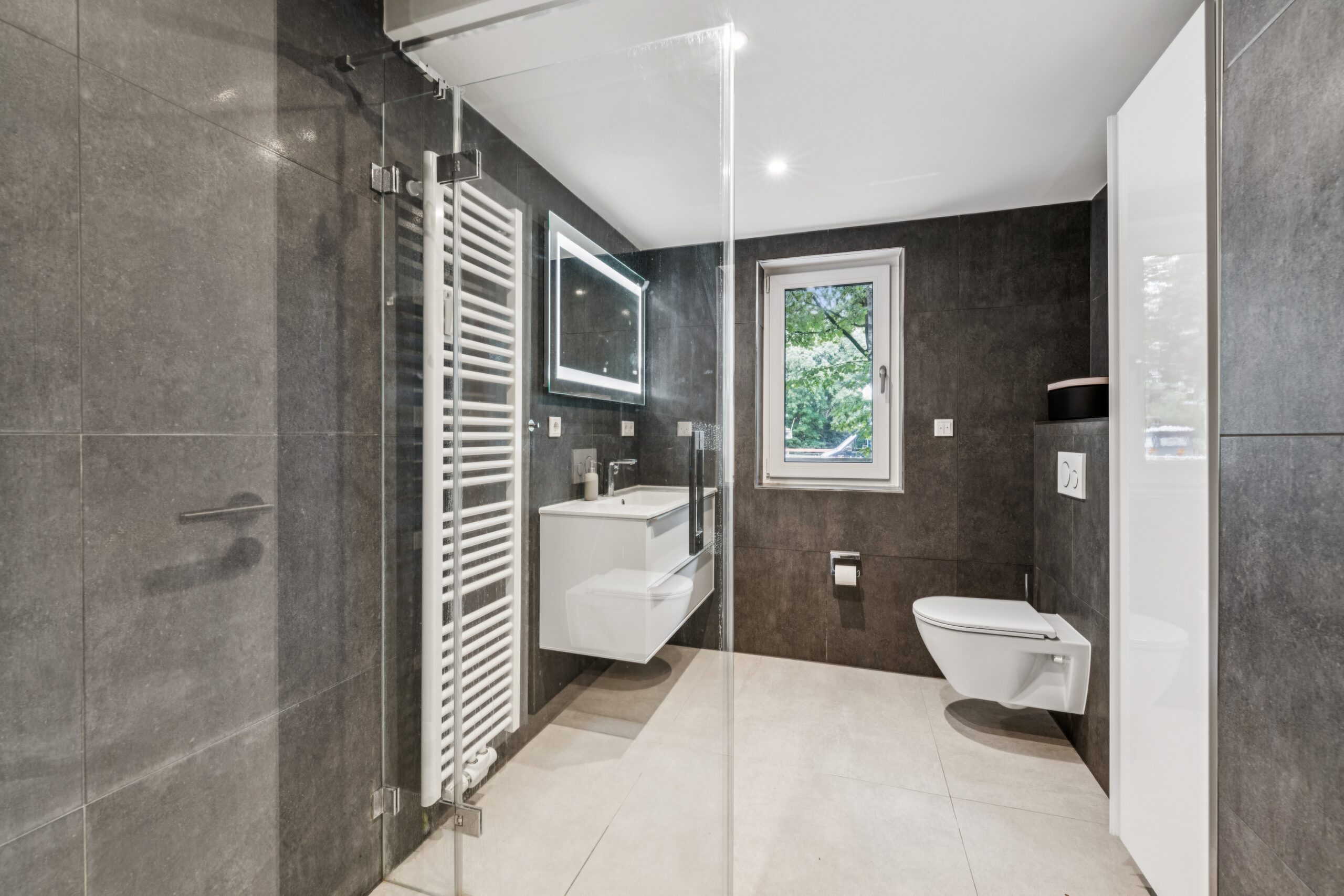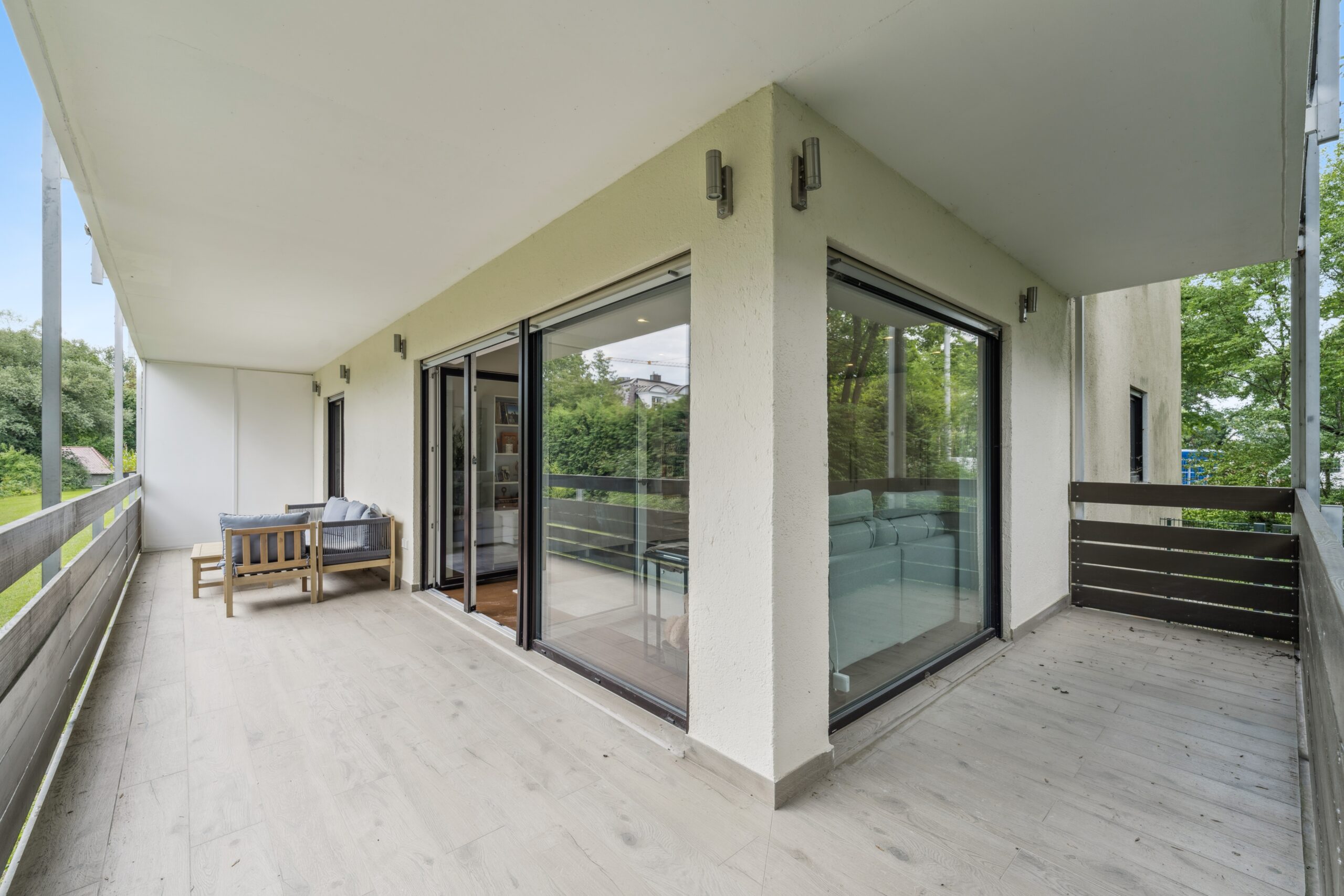 Mit bodentiefen Fenstern in Wohn- und Schlafzimmern, die Zugang zum Balkon ermöglichen, wird Ihr neues Zuhause von Licht durchflutet. Das stilvolle Tageslichtbad mit ebenerdiger Dusche sowie ein separates Gäste-WC bieten luxuriösen Komfort. Edles Eichenparkett, Feinsteinzeug und moderne Fußbodenheizung unterstreichen das hochwertige Wohngefühl. Für noch mehr Komfort sind neue Isolierglasfenster und elektrische Außenrollläden nach Absprache möglich.