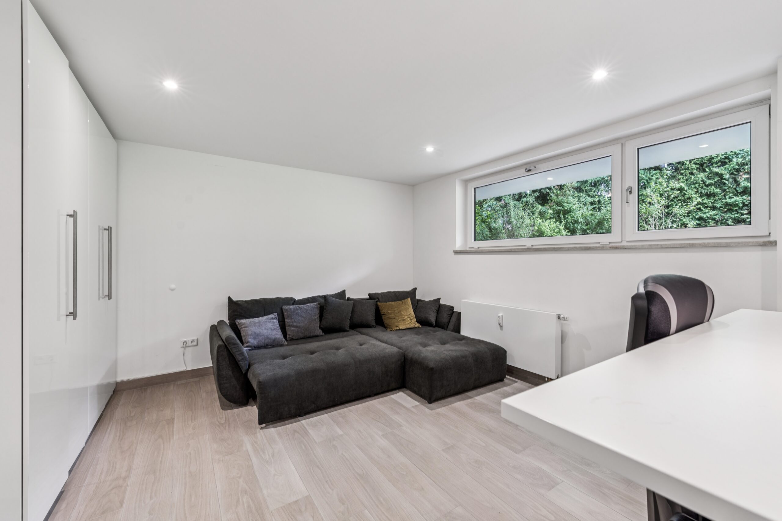 Besonders spannend ist der beheizte Hobbyraum im Untergeschoss – ein echtes Raumwunder! Egal, ob Sie diesen als Homeoffice, Gästezimmer oder persönlichen Rückzugsort nutzen möchten, der Blick ins Grüne und das eigene Bad machen diesen Raum zu einem wahren Plus. Hier können Sie Ihre Ideen und Wünsche verwirklichen.
